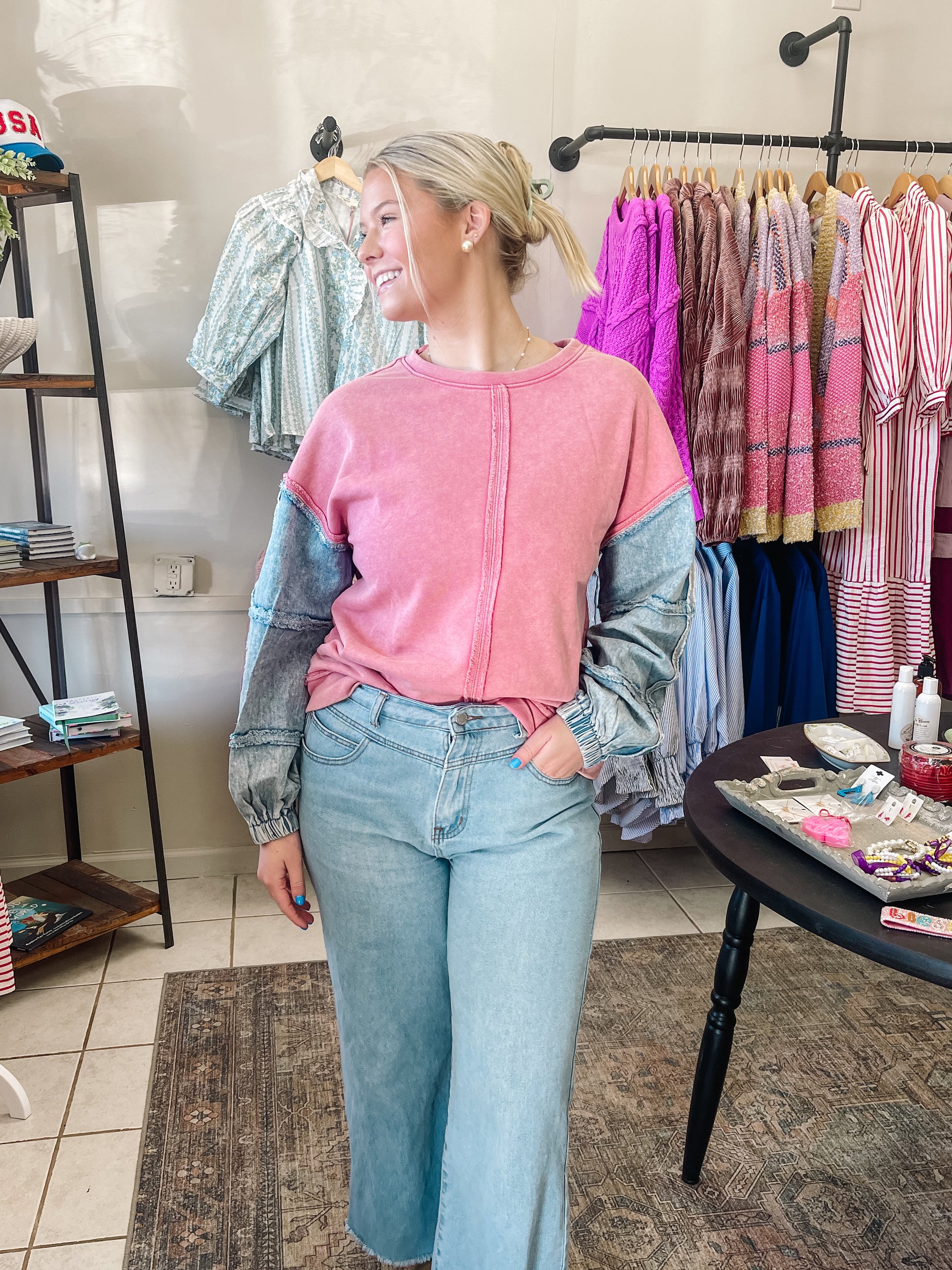 Oversized Denim Sleeve Casual Top